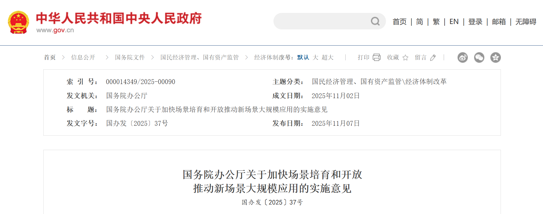 - 11-082025 《關(guān)于加快場景培育和開放推動新場景大規(guī)模應(yīng)用的實施意見》發(fā)布